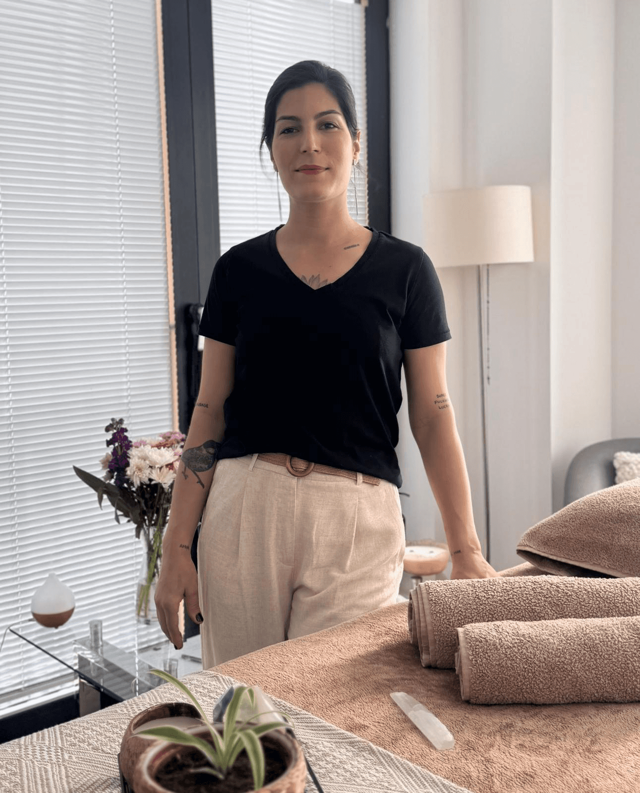 Narjara Pianis is a certified Brazilian therapist specialising in the Renata França Method, currently studying Biomedical Science and applying precise, anatomy-led techniques to enhance healing and overall wellbeing.